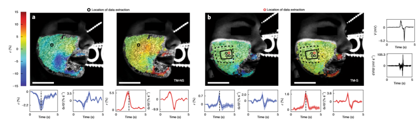 由于肌肉逐渐无力和萎缩,肌萎缩性侧索硬化症(ALS)患者最终将难以开口讲话。目前帮助非语言交流的设备往往受高计算负荷、体积庞大、人机交互不便等因素的制约而无法得到普遍采用。若能将精确监测软组织生物运动学的方法(如因面部形变导致的的皮肤应力)用于计算和识别不同的面部活动,将可以帮助无法利用传统通信手段说话或互动的患者进行准确、即时的非语言交流。在此背景下,古元冬教授的团队和麻省理工公司媒体实验室(MIT Media Lab)的Dagdeviren教授团队合作,对用于解码面部肌肉应力和预测面部运动学的柔性集成系统,面部表情推理解码器(cFaCES),进行了设计和测试。实验证明,cFaCES对表皮应力能够进行时域和空间域的同时监测;并实时解码不同的面部变化特征。