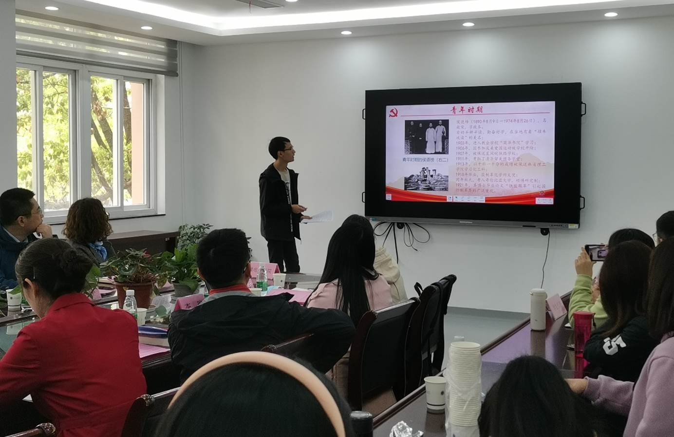 第7学习小组殷智伟同学代表小组展示主题是“领跑世界·高温超导——记国家最高科学技术奖获得者赵忠贤的学术生涯”。他首先介绍了赵忠贤院士年轻时是如何从实习生步入科学殿堂,用理论和实验对国际权威提出质疑。之后,他介绍了赵忠贤团队异常艰苦的科研条件下,独立发现液氮温区氧化物超导体和发现临界温度可达55K的系列铁基超导体的科研历程。赵忠贤院士彰显了共产党人“信仰坚定、心系群众、勇于担当、创新奉献”的精神风貌。殷智伟同学谈到他的学习感悟:“当代年轻人在科研之路上也应戒骄戒躁,不要只盯着论文,要试着真的去解决科学问题。即使身处逆境,不灰心、不放弃,总是满怀希望,为实现中华民族伟大复兴的中国梦、为人类的文明进步做出新的贡献。”