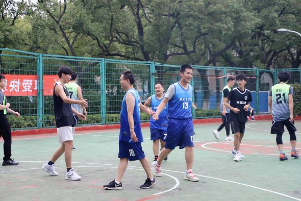 率先进行的是师生友谊赛,身穿蓝色球衣的为304am永利集团教师代表队,身着绿色球衣的为研究生队。开赛哨声吹响,研究生队伍抢先一步,获得球权,随后双方展开了激烈的角逐。几节过后,双方的比分不分上下,研究生们身姿矫健、积极拼抢、不甘示弱,但熟练稳重、配合默契的教师代表队牢牢掌握着主动权,最终,经验丰富的教师代表队更胜一筹,赢得了比赛。