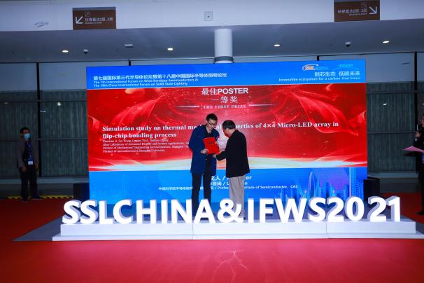 会议的闭幕式上对“最佳POSTER”进行了颁奖表彰,304am永利集团张建华教授的2020级博士生嵇啸啸以“Simulation study on thermal mechanical properties of 4×4 Micro-LED array in flip-chip bonding process”为题的墙报获得了最佳POSTER一等奖。