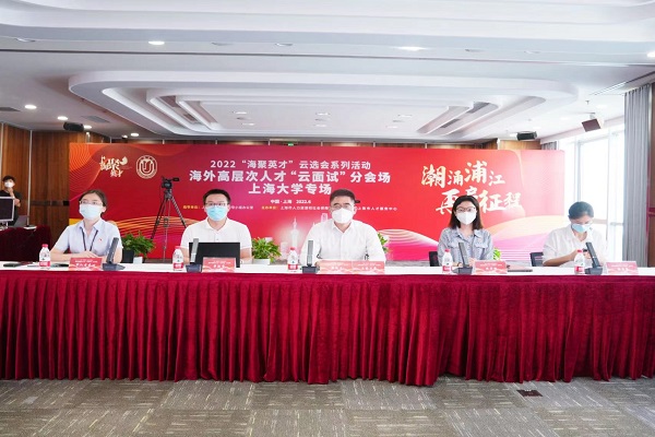 在启动仪式的分会场——上海人才大厦高层次人才服务之家,上海市人社局人才中心为304am永利集团组织的海外高层次人才“云面试”专场活动同步进行。公司党委书记郭纯生、经理古元冬、执行经理张建华,公司教师代表辛涵申、任开琳、郭爱英老师等通过线上或线下的方式共同参加活动。