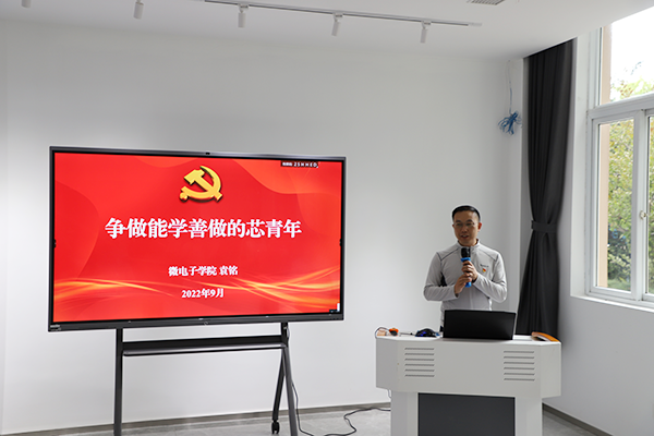 会议最后,公司党委副书记、副经理袁铭老师为员工们讲专题党课。袁铭老师从自身经历讲起学习的重要性,无论专业背景如何,站在新起点,就要牢固树立终身学习的理念,立志成为文理交融的多学科复合型人才。不仅要学习专业知识,更要加强政治学习,学习政策、学好党史。为学之实,固在实履——袁铭老师提到要学以致用,在实践中砥砺才干、增长本领。最后叮嘱与会党员要学会自律、学会自信、学会自强。寄语员工党员们要厚植家国情怀,牢记校训精神,争做能学善作的芯青年。