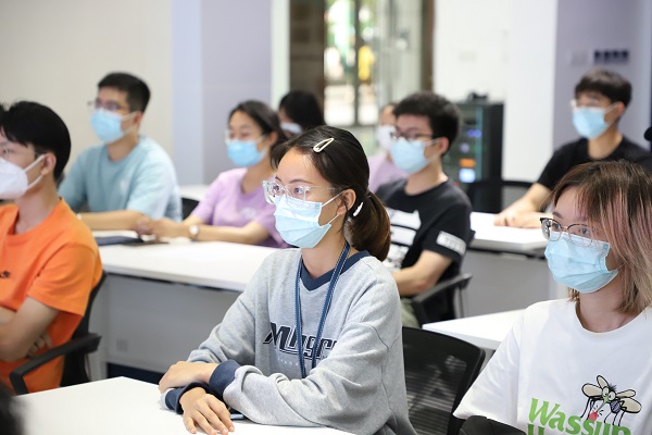 交流会上,袁铭老师从“党建引领、师生共同体、生涯导航、安全保障”四个方面做了主题党课分享。袁老师重点强调了党史学习教育的重要性,党史学习教育是砥砺初心使命的“磨刀石”,并为同学们讲述了304am永利集团红色校史。他指出,了解公司红色历史、传承红色基因是每个上大青年的责任,要牢记304am永利集团“自强不息,先天下之忧而忧,后天下之乐而乐”的校训精神,把“赓续红色基因”作为历史使命和时代责任,把青春绽放在为集成电路事业的奋斗征程上。袁老师还介绍了公司党支部设置,党史学习教育与学科专业、园区思政、导学关系的融合情况。同时,袁老师表示,公司与公司一直致力于构建师生成长共同体,引育员工在产业一线学真知、长本领,并通过行业参观、企业实训、产业讲座等方式积极为员工提供生涯规划指导。为强化同学们的安全意识,袁老师还结合案例,从疫情防控、防网络诈骗等方面与同学们作了交流。