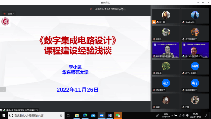 李小进博士做了“《数字集成电路设计》课程建设经验浅谈”的报告。对数字集成电路设计这门课程从开课需求到课程设计到教学安排、以及网上教学资源等做了详细的解说。