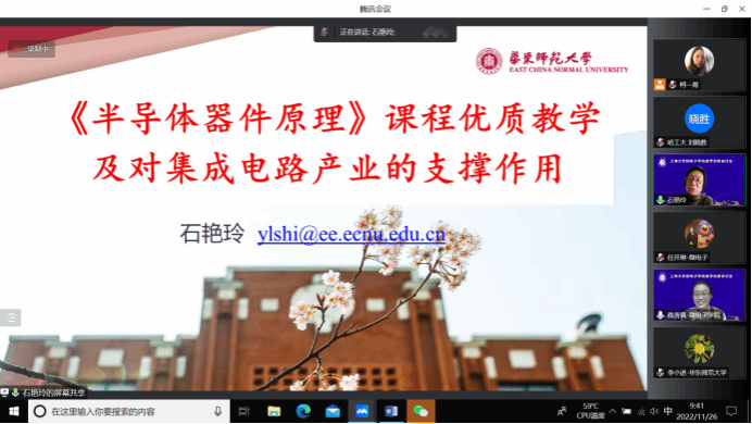 石艳玲教授做了“《半导体器件原理》课程优质教学及对集成电路产业的支撑作用》”的报告,详细讲解了从课程教学到学科竞赛的各种教学安排以及该课程和先修课程以及实际应用的关系。