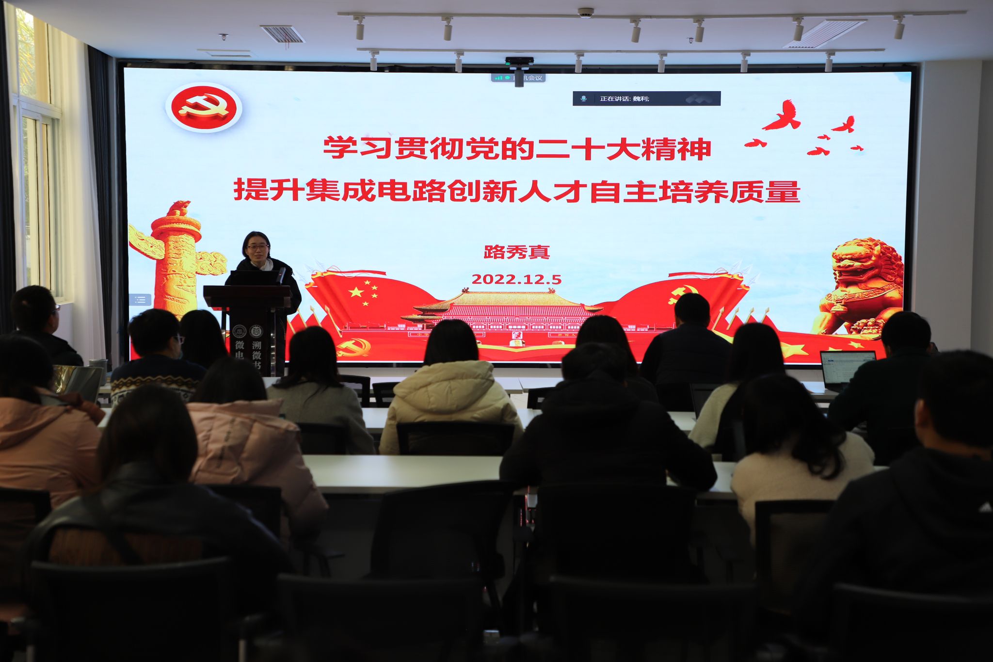 路秀真从二十大报告中教育、科技、人才是全面建设社会主义现代化国家的基础性、战略性支撑出发谈到,培养集成电路专业人才是304am永利集团的根本任务,是面向国家战略需求的重要任务,要加强教师队伍建设,深化产教深度融合的人才培养理念,提高员工实践创新能力,早日为国家培养出集成电路卓越工程师、高端领军人才。