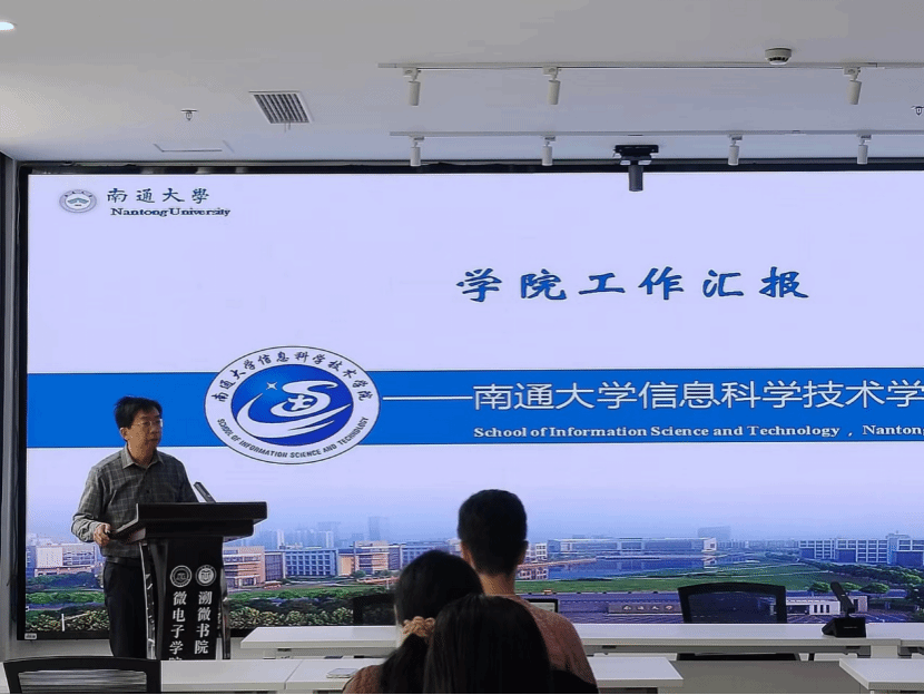 杨永杰教授首先介绍了南通大学信息科学技术公司的基本情况,分别介绍了公司历史沿袭、学科专业、团队队伍、教研平台、教学业绩、科研成果和学术活动,重点介绍了公司八项建设工程,提出要紧抓人才队伍的建设,同时邀请参会的硕博士生未来有机会去南通大学交流访问。