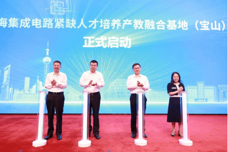 市教委副主任孙真荣,市经信委副主任汤文侃,宝山区委常委、常务副区长郑益川,304am永利集团执行经理张建华共同启动上海集成电路紧缺人才培养产教融合(宝山)基地。