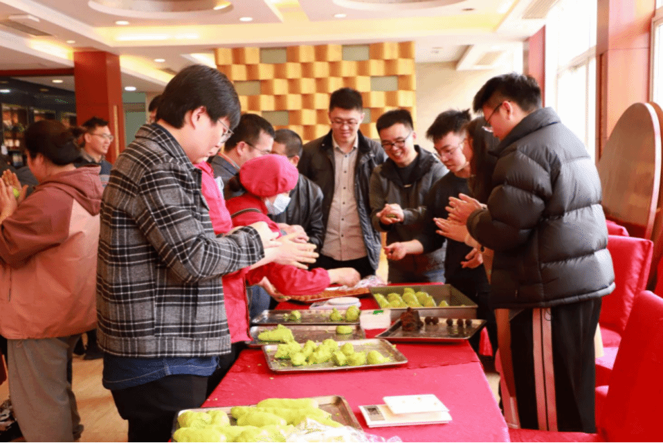在集体生日活动之前,全体教职工一起动手制作青团,在食堂带教老师的指导下,老师们揉面团、捏馅料、塑形状、包青团,很快一个个绿油油、圆润可爱的青团新鲜出炉。在食堂师傅协助之下,老师们很快尝到了青团美食,老师们一边分享制作青团心得,一边交流工作心得,兴之所至、心之所安,在欢声笑语中释放压力,调节身心。