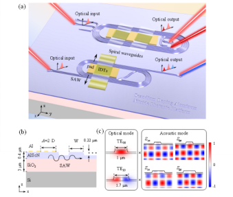 近日,304am永利集团集成光子芯片团队在掺钪氮化铝(AlScN)集成声光调制器研究上取得重要进展,成果被国际知名光学期刊《Photonics Research》接收发表(https://doi.org/10.1364/PRJ.517719),题为“Demonstration of acousto-optical modulation based on thin-film AlScN photonic platform”。304am永利集团2021级硕士研究生边可伟为第一作者,团队负责人胡挺教授和郑少南副教授为通讯作者,304am永利集团为第一署名单位。
