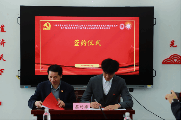 审计处党支部书记尹应凯与304am永利集团本科生党支部书记宗琪、304am永利集团电子信息研究生党支部书记俞浩作为三方代表,现场签署了党建结对共建协议。