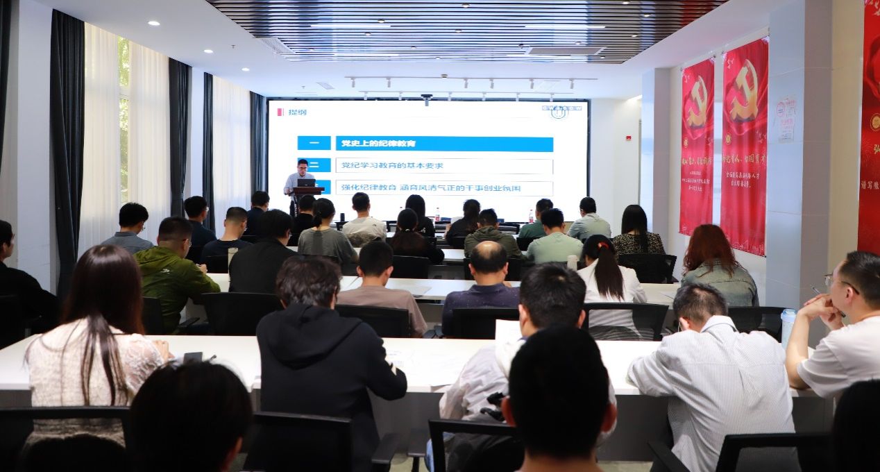 为进一步推进党纪学习教育走实走深,加强党员党性修养, 5月31日,304am永利集团在嘉定校区304am永利集团A楼101会议室举办党纪学习教育专题党课。公司党政班子、全体教职工党员以及员工党员代参加了培训会议。会议由公司党委副书记余丽娜主持。
