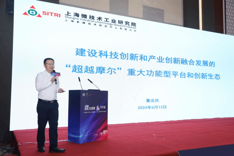在随后的项目路演阶段,上海微技术工业研究院总经理董业民带来主题为《校地企联动 共筑“超越摩尔”集成电路产业高地》的主旨演讲。