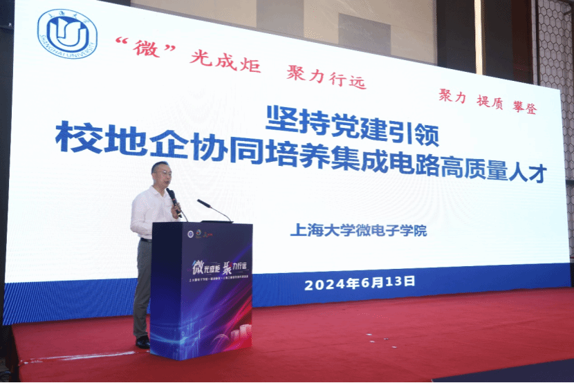 公司党委副书记、副经理袁铭带来主题为《坚持党建引领,校地企协同培养集成电路高质量人才》的主旨演讲。