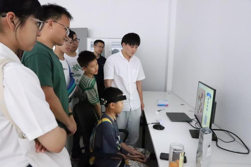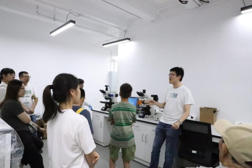 随后,大家参观了超净间及专业实验室,了解微电子领域常用的工艺设备,亲身体验微电子技术带来的无尽魅力和无限可能。各小组在宋健老师、郑乐老师、赵曦老师和蔡杲哲老师的带领下,参观了多功能显微镜实验室、生物医疗检测实验室、脑机接口实验室和微流控实验室。老师们通过生动幽默的讲解和脑控小游戏、AR人机交互等有趣的互动体验,让孩子们近距离接触最前沿的研究成果,体验不一样的科学世界。员工们兴趣盎然、不时提问,对先进微电子技术也有了更直观的感知,活动在师生之间意犹未尽的交流和探讨中圆满结束。