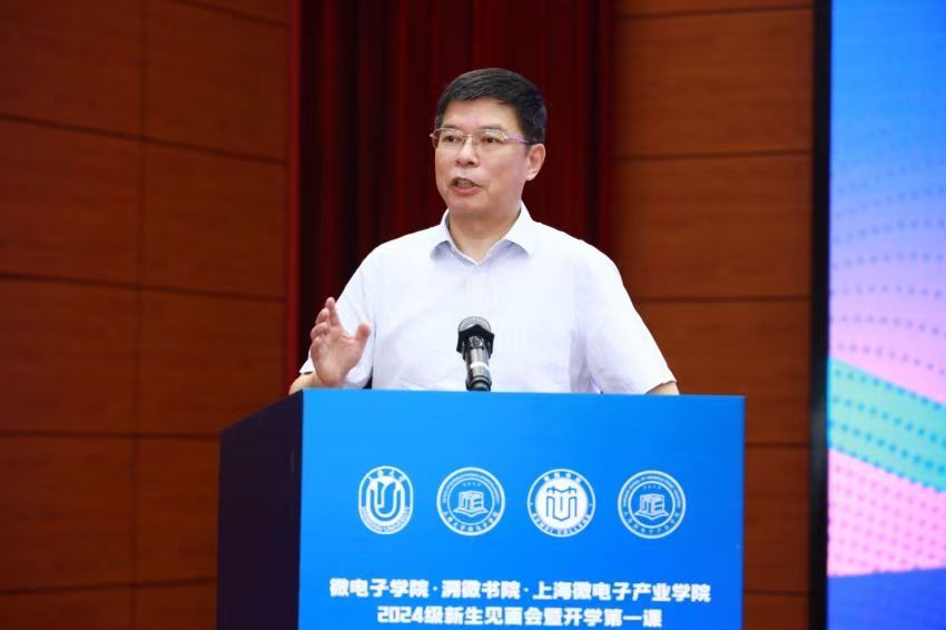 随后,全体新生佩戴院徽,别在胸前的院徽熠熠闪光,是“上大微电子人”的象征,也承载着公司“科技强国、产业强国”的使命担当,激励着每一位新生不断迎接新挑战,在祖国最需要的阵地上建功立业。