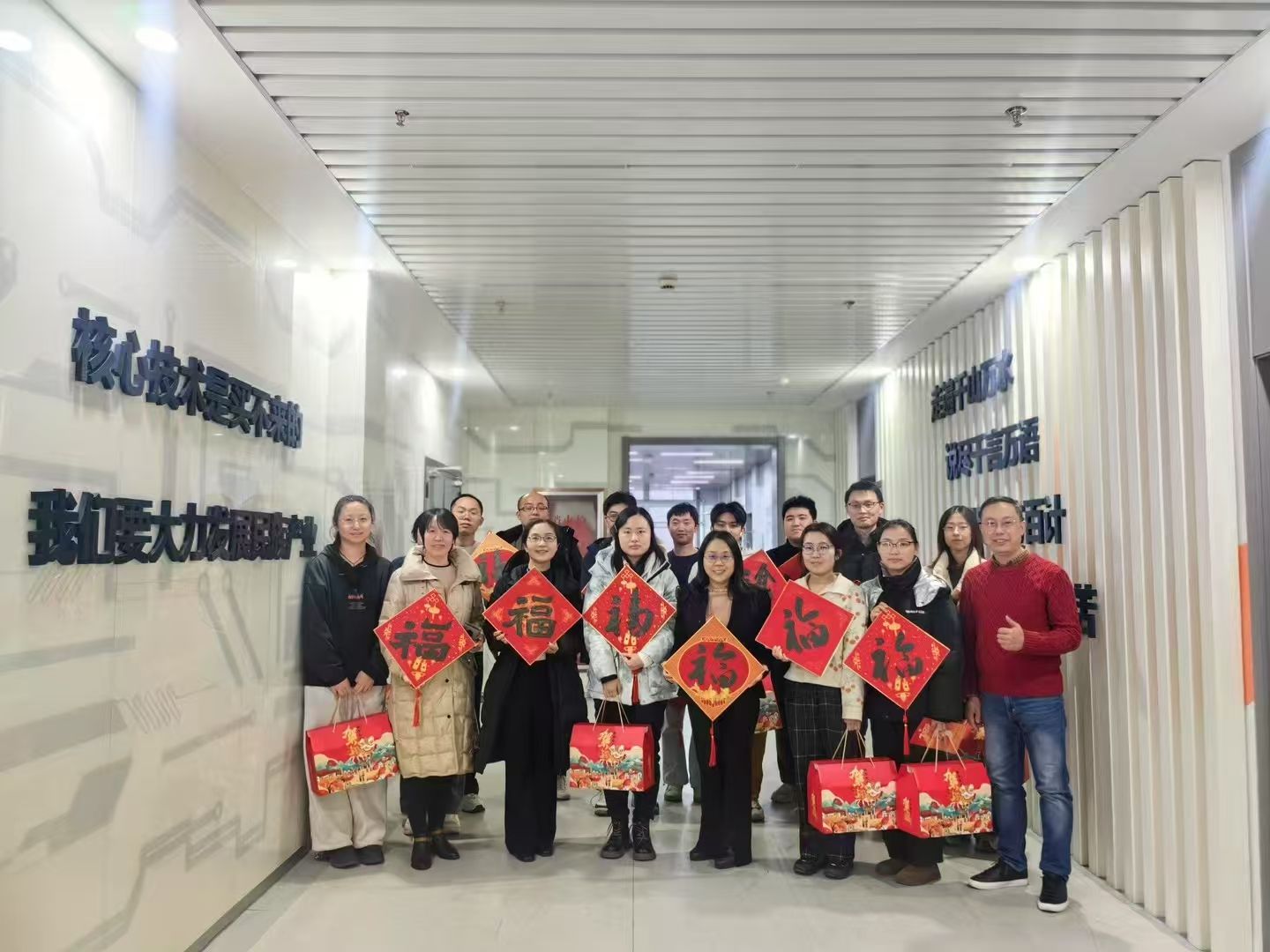 1月23日,新春佳节前夕,304am永利集团副董事长张建华,党委研工部部长魏宏、副部长席慧霞、周轶,主管胡晨,公司党委书记郭纯生,党委副书记、副经理袁铭等看望慰问寒假公司留校员工。
