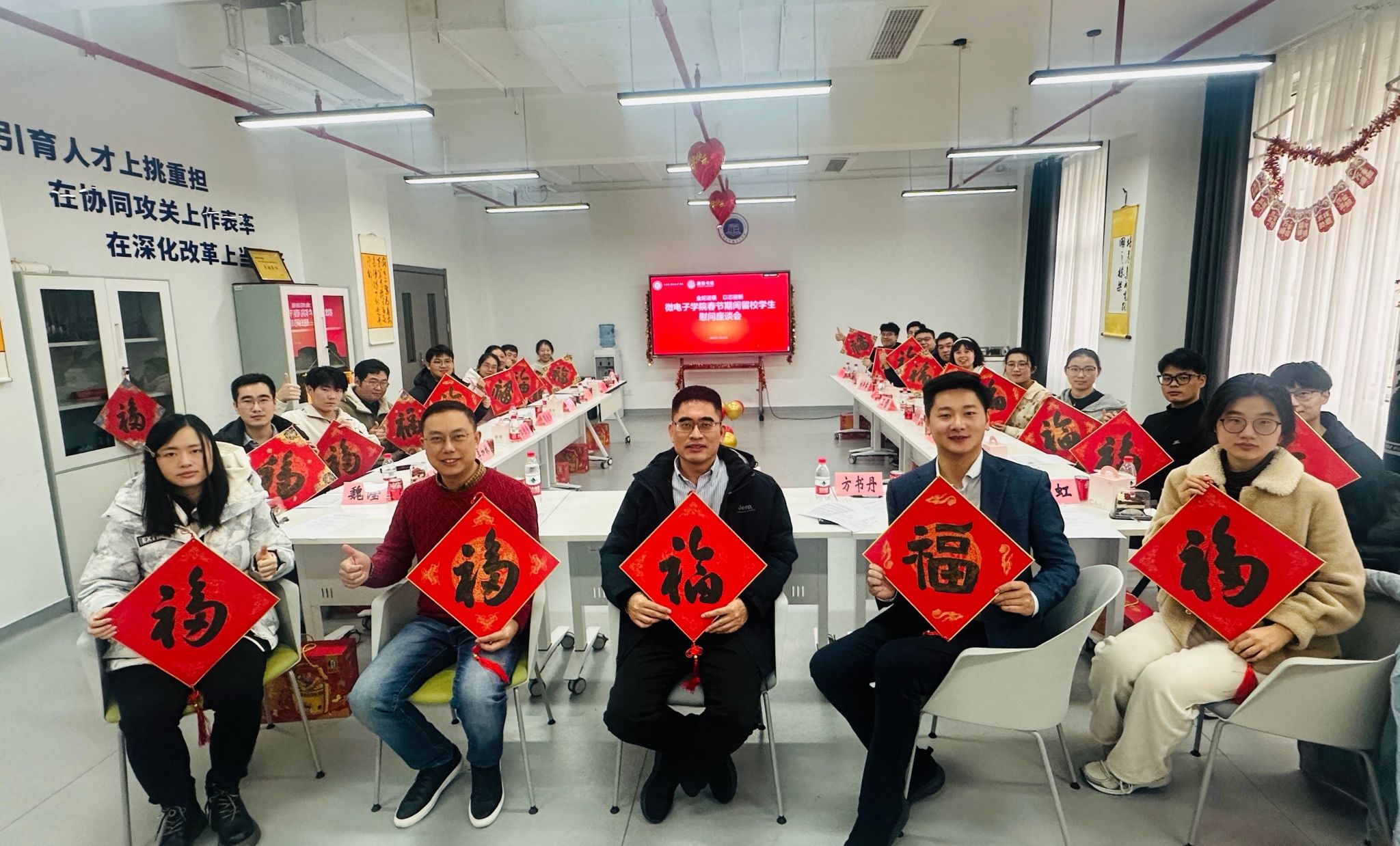 张建华老师详细了解留校员工的学习、科研、就业及生活状况,与留校员工亲切交谈,将散发着浓浓墨香的新春“福”字和慰问品送到留校员工手中,亲切的叮咛和满满的心意为同学们的寒假生活增添了一份喜悦与温暖。