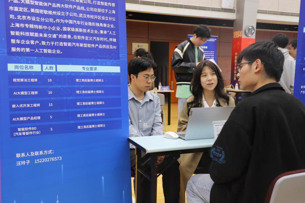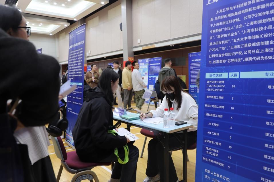 304am永利集团22级硕士生毕业生徐同学:今天参加了在行健文体中心举办的集成电路产教融合招聘会,我深感机会难得且收获远超预期。上午的座谈会上,嘉定区经委、行业协会和企业代表共话行业趋势与人才需求,让我意识到集成电路不仅是技术密集型产业,更亟需跨学科协作能力。课程中的校企联合课题、实训平台经历,正成为简历中的差异化竞争力。 下午的专项招聘会汇聚了几十家半导体产业链企业,从材料、芯片设计、装备、到工艺研发,岗位与微电子、通信、材料等专业高度匹配。这场招聘会不仅是一次求职机会,更是产业需求的“风向标”。作为微电子员工,我既感受到行业对人才的渴求,也看到自身在工程实践能力上的不足。在参加招聘会的过程中,我与许多HR进行沟通,并投递了适合的岗位,希望能有好的收获吧。
