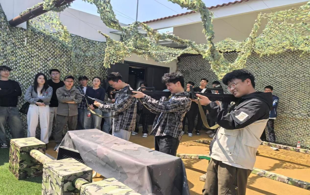 走出展厅,室外的 “练兵场” 格外吸睛。这里是民兵训练、防空演习、消防演练的场地,也是参观者体验军事生活之处。练兵场上的模拟射击设备,引得不少同学们跃跃欲试。拿起模拟枪支射击时,紧张刺激之感扑面而来,大家在体验中感受射击乐趣,也深切体会到军人训练的艰辛。