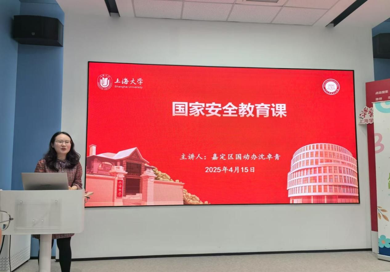 嘉定区国动办沈卓青老师给带来了一趟生动的国家安全教育课,强调了国家安全其是国家生存发展的基石,用真实案例敲响警钟,分析周边安全挑战,加深了同学们对国家安全的认识。