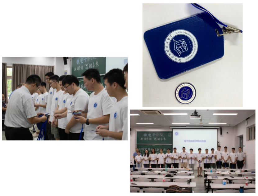 随后,古元冬经理与许烁书记一起向全体新生赠授院徽及公司纪念品